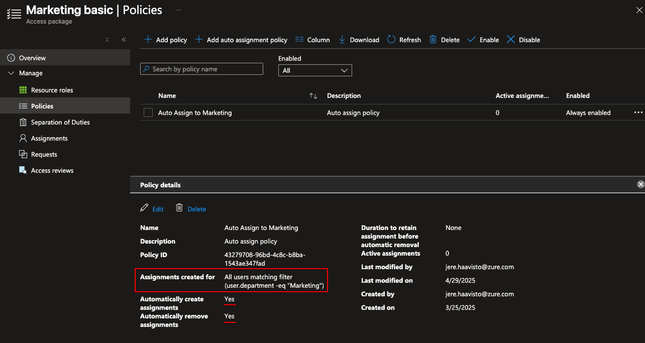 Let’s say that you have users in sales that want to sometimes access the marketing materials. That’s ok but you don’t want them to have standing access to said resources. You can use the same “Marketing basic” package and create another policy that enables users to request access.