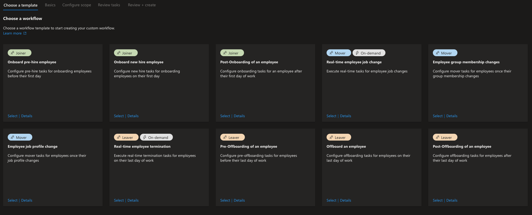 Think of Lifecycle Workflows as automation rulesets for different parts of employee lifecycle. You start with a template and create your custom rules to fulfill the need in your org:
